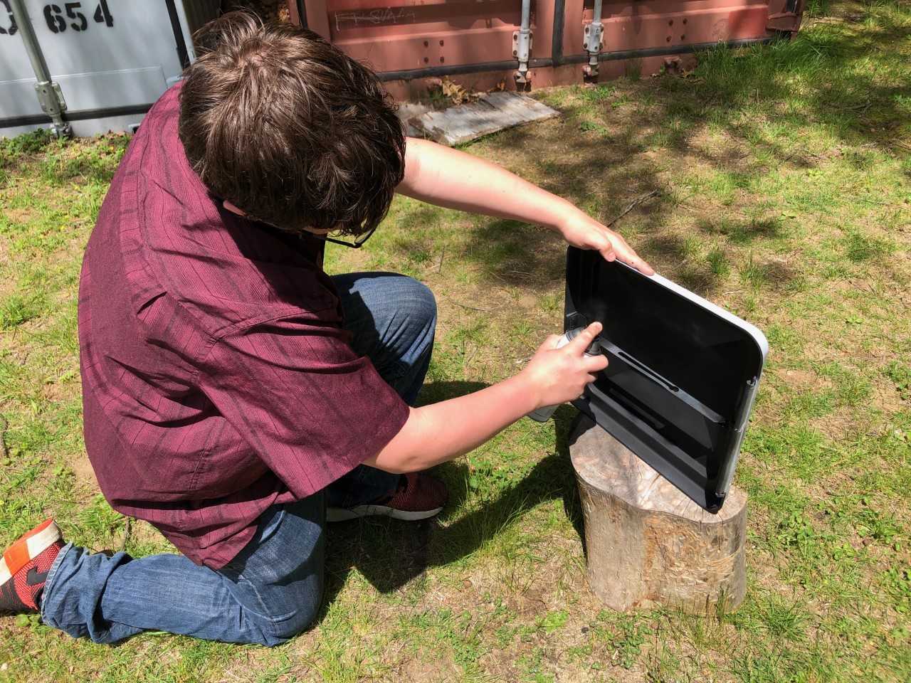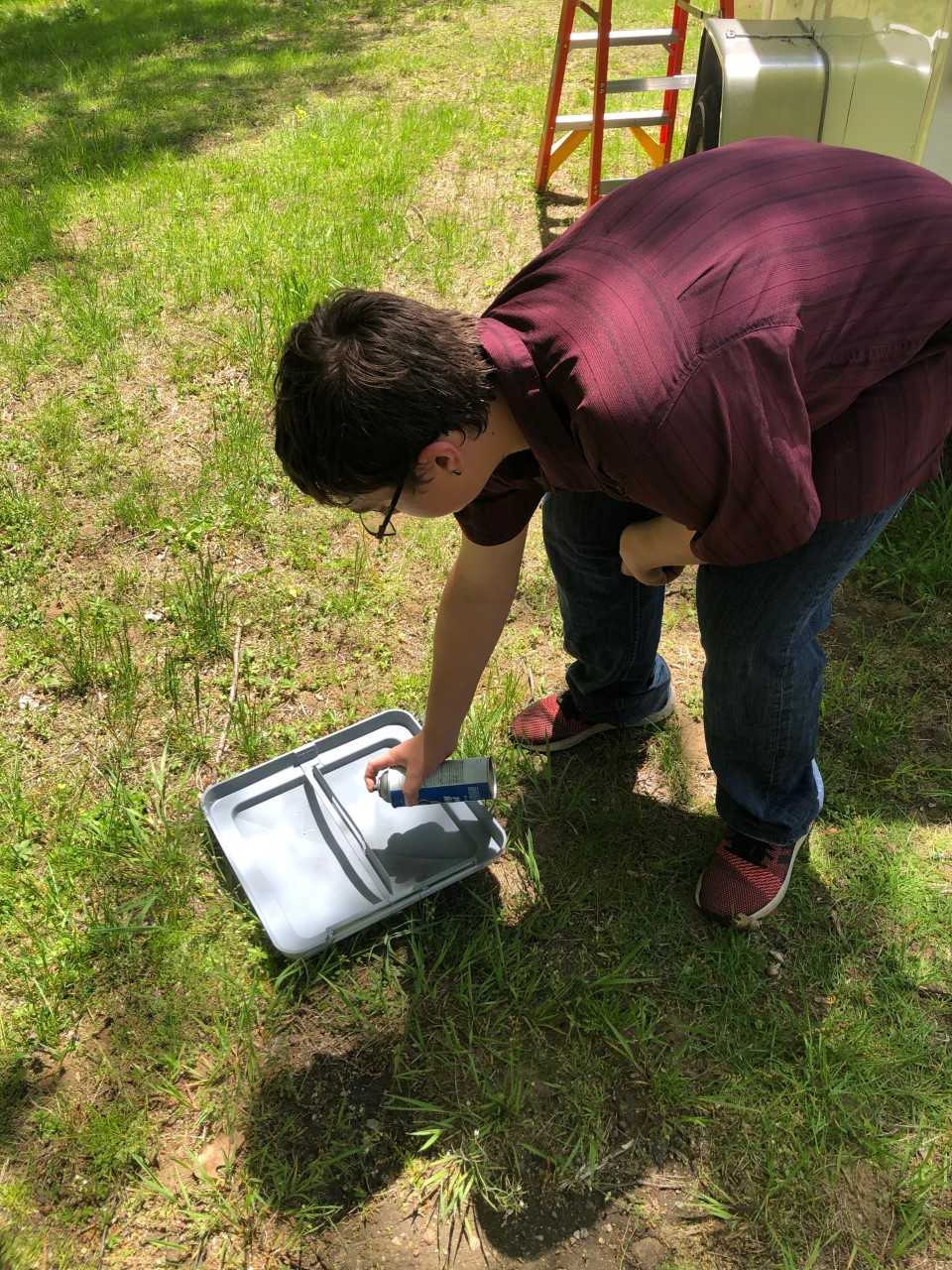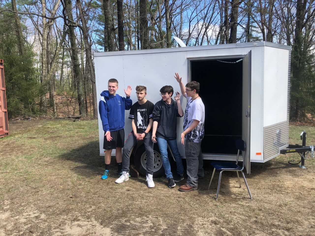 After researching a number of different options, including building our own trailer from the ground up, the students decided to purchase a trailer. Purchasing a trailer increases the safety (we don’t have to worry about it flying off of the frame when it is traveling) and allows the students to focus on the modifications needed to turn it into a camera. The trailer is 6 feet wide, 6 feet 3 inches tall, and 10 feet long, much larger than our original 5 foot, by 5 foot, by 8 foot design. Once the trailer was delivered, the first task was to paint the interior and caulk any light leaks with black silicone sealant.