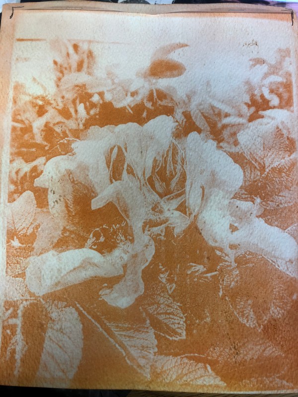 The past two weeks our students have been working on anthotypes. Anthotypes are photographic images made using plant dyes. A negative is placed over paper painted with a natural dye and is set in the sun to fade. After a number of hours, the image appears on the paper. This type of photographic print was one of the first print process used. Unfortunately, because the dyes are not UV stabilized, the images will gradually fade until they disappear forever.